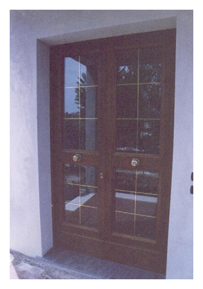 con bozze sformellate in massello e parte superiore con vetri di sicurezza trasparenti, satinati, sabbiati, decorati. Possibilità serratura di sicurezza. Verniciatura a flattyng opaco o lucido.